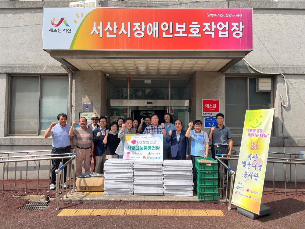 ¼­»ê½ÃÀå¾ÖÀκ¸È£ÀÛ¾÷Àå¿¡ »þ¿ö¿ëǰ ¼¼Æ® 45°³, û¹ÙÁö 24°³, »§ Á¾·ù¸¦ ÈÄ¿øÇØÁּ̽À´Ï´Ù.